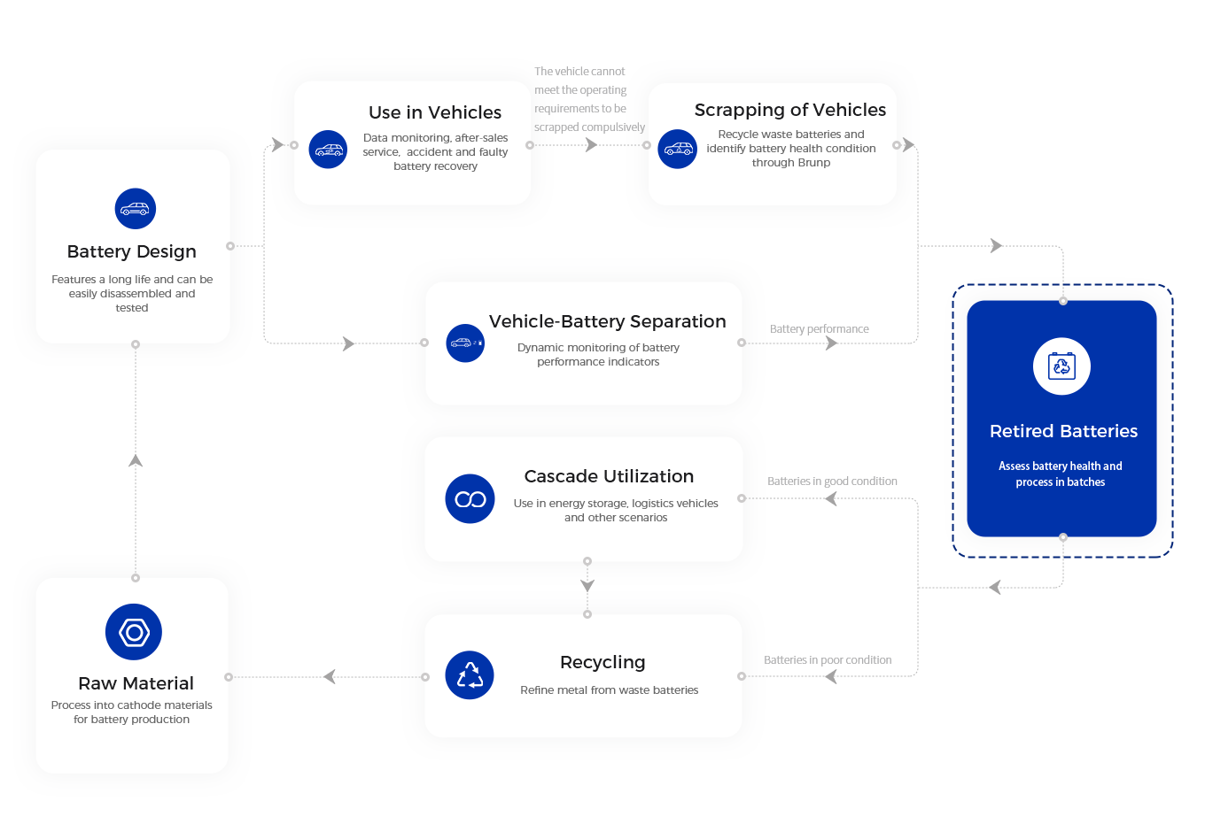 Supported by its subsidiary Brunp, CATL is working with customers to create a closed loop of battery production – application – cascade utilization – battery recycling. At the same time, CATL is in talk with local partners in Europe for strategic cooperation in areas of cathode active materials and battery recycling, so as to promote CATL's localization in Europe and develop a sustainable battery value chain, thus contributing to achieving global carbon neutrality goals.
